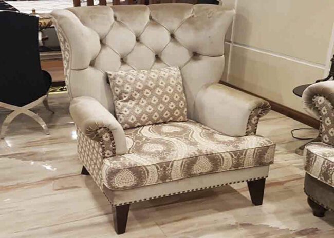 The upholstery on these chairs are used of two different materials and textures inorder to enhance the beauty of the chair.