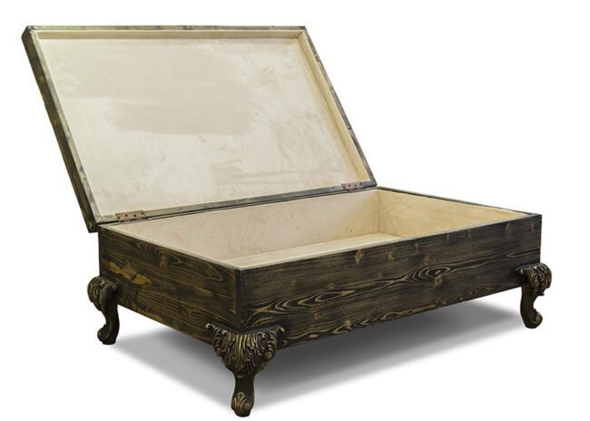 Made of metal frame with brass finish with laminated MDF top.