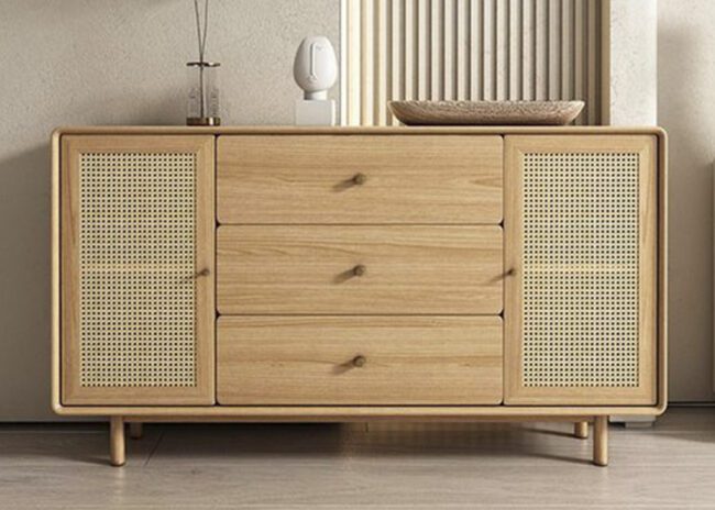 Modern style Side Board made of oak Wood & Rottan Panel Doors